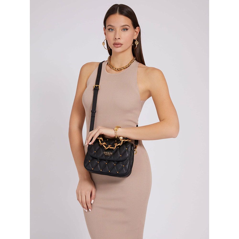 GUESS Women's Abey Black Crossbody Flap Bag
